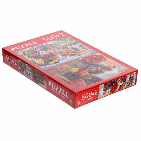 10 цен на Набор пазлов Рыжий кот 2 в 1 (500 и 500 элементов), "Цветочные натюрморты" (ХП500-4313)