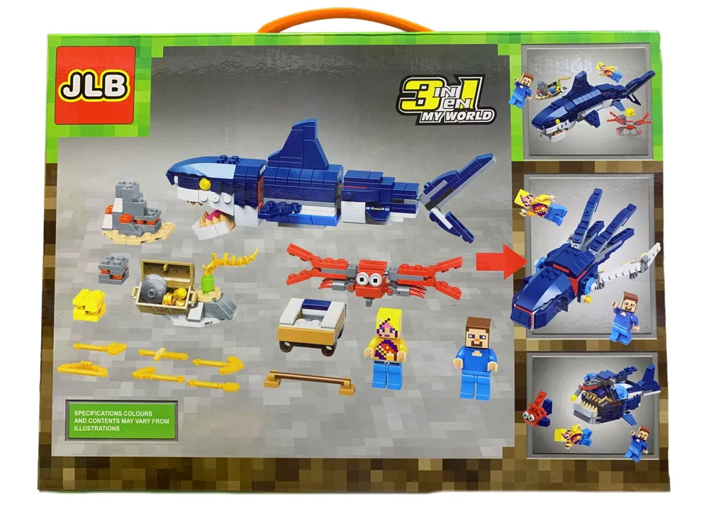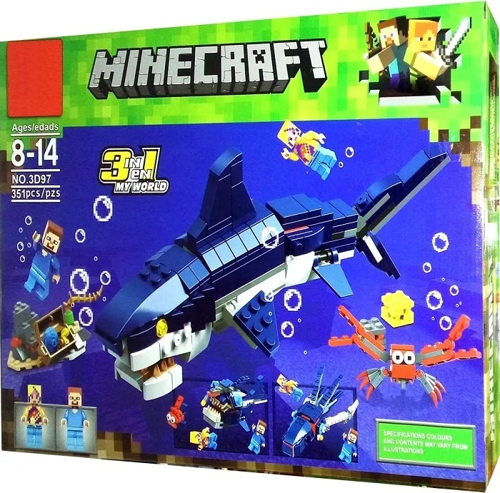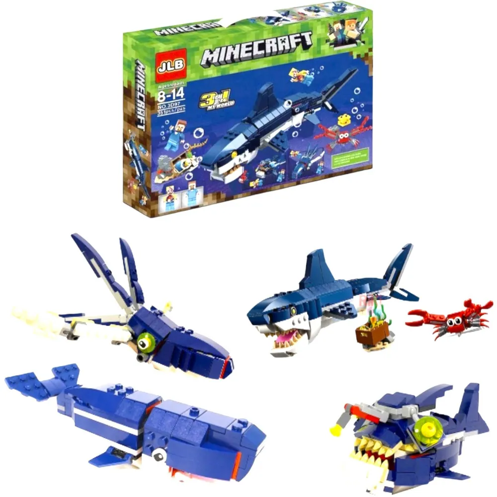Конструктор лего Майнкрафт для мальчиков Акула, 351 деталь 3 в 1 из набора деревня Minecraft ,а также в животные игрушки фигурки человечки корабль 1 089 ₽