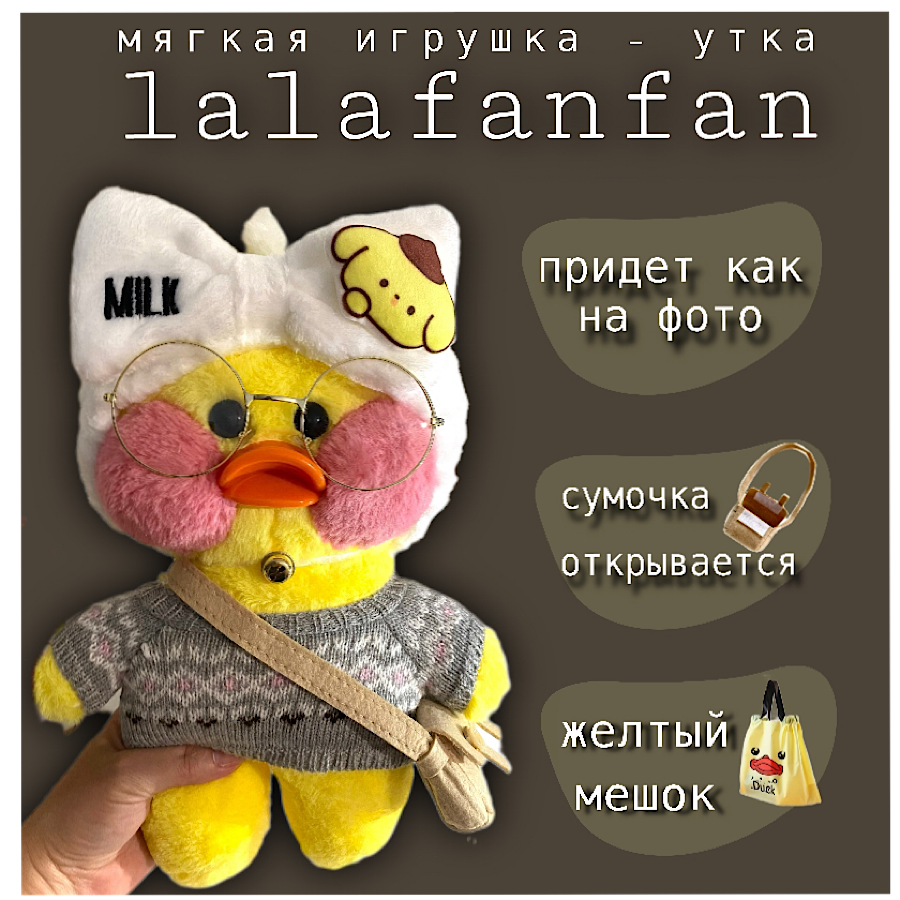 Белая утка LaLaFanFan в разной одежде. Утенок в очках. Мягкая плюшевая игрушка уточка лалафанфан. Утя лалафан, высота 30 см. Плюс подарок