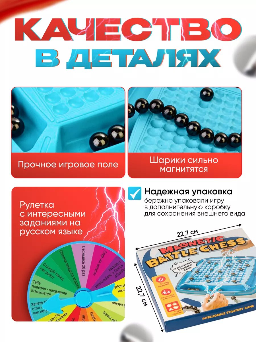 Отзывы на Настольная развивающая игра "Магнитный бой" для детей от 6 лет и всей семьи, 32 магнита + рулетка с заданиями , синий