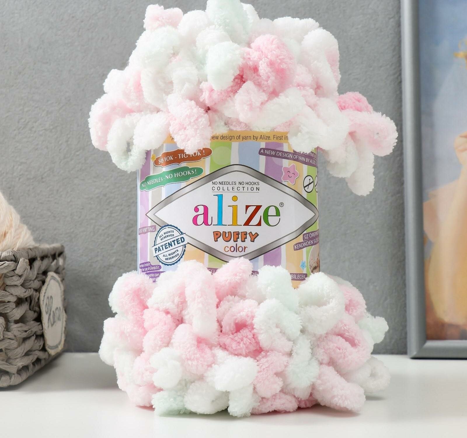 Отзывы на Пряжа Alize Puffy color белый-мята-розовый (6052), 100%микрополиэстер, 9м, 100г, 1шт