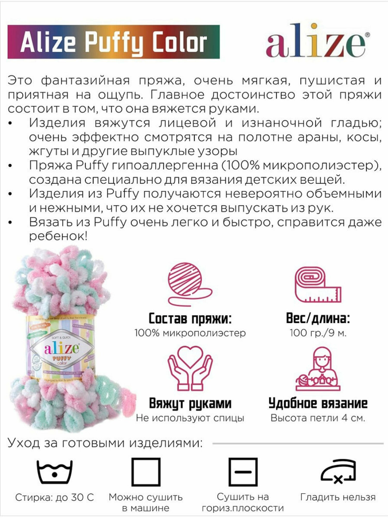 Пряжа Puffy Color Alize (6052), 100г, 9м, 100% микрополиэстер (2 шт.) 736 ₽