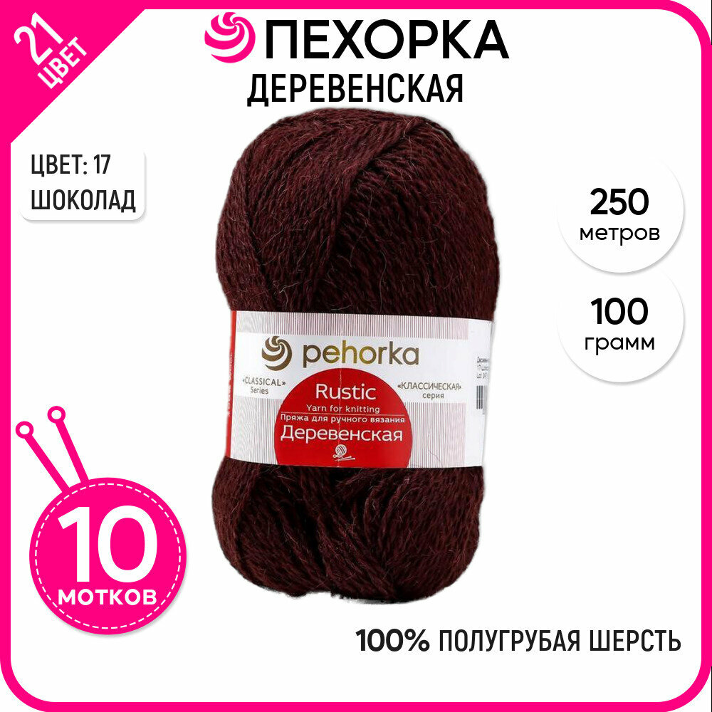 10 цен на Пряжа для вязания Пехорка "Деревенская" 10 шт, Шоколад №17