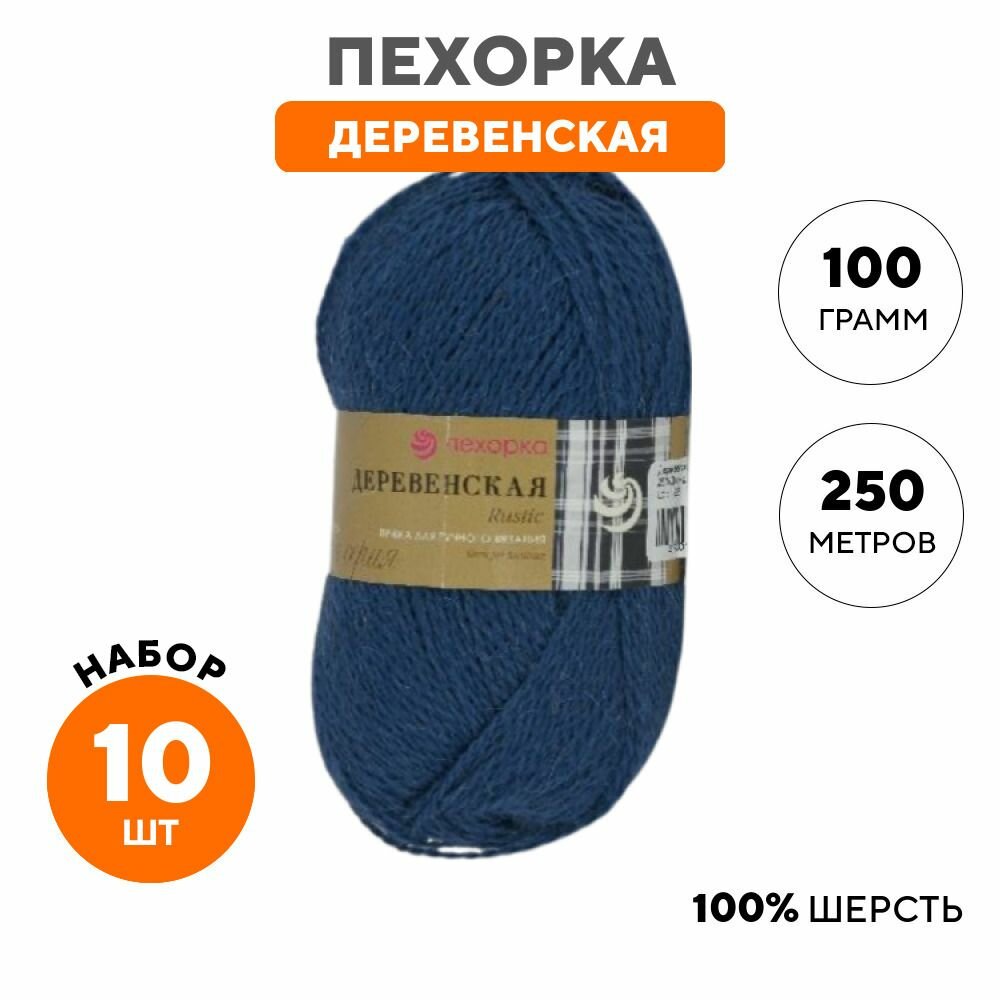 Пряжа Пехорка Деревенская цвет 04 темно-синий (100г/250м, упаковка 10 мотков) 2 540 ₽