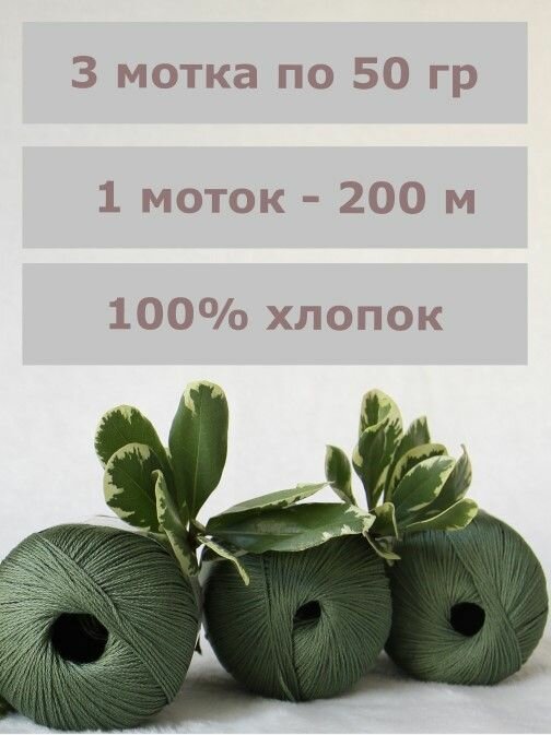 Пряжа Хлопок мерсеризованный от Камтекс, цвет Хаки 294, 3 шт*50 г/200 м 800 ₽