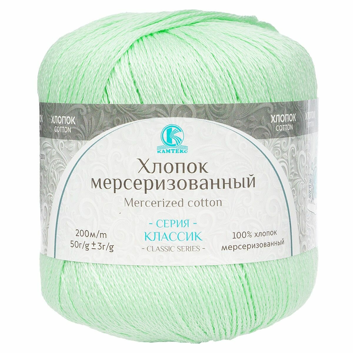 Пряжа Камтекс Хлопок мерсеризованный ментол (107), 100%мерсеризованный хлопок, 200м, 50г, 1шт