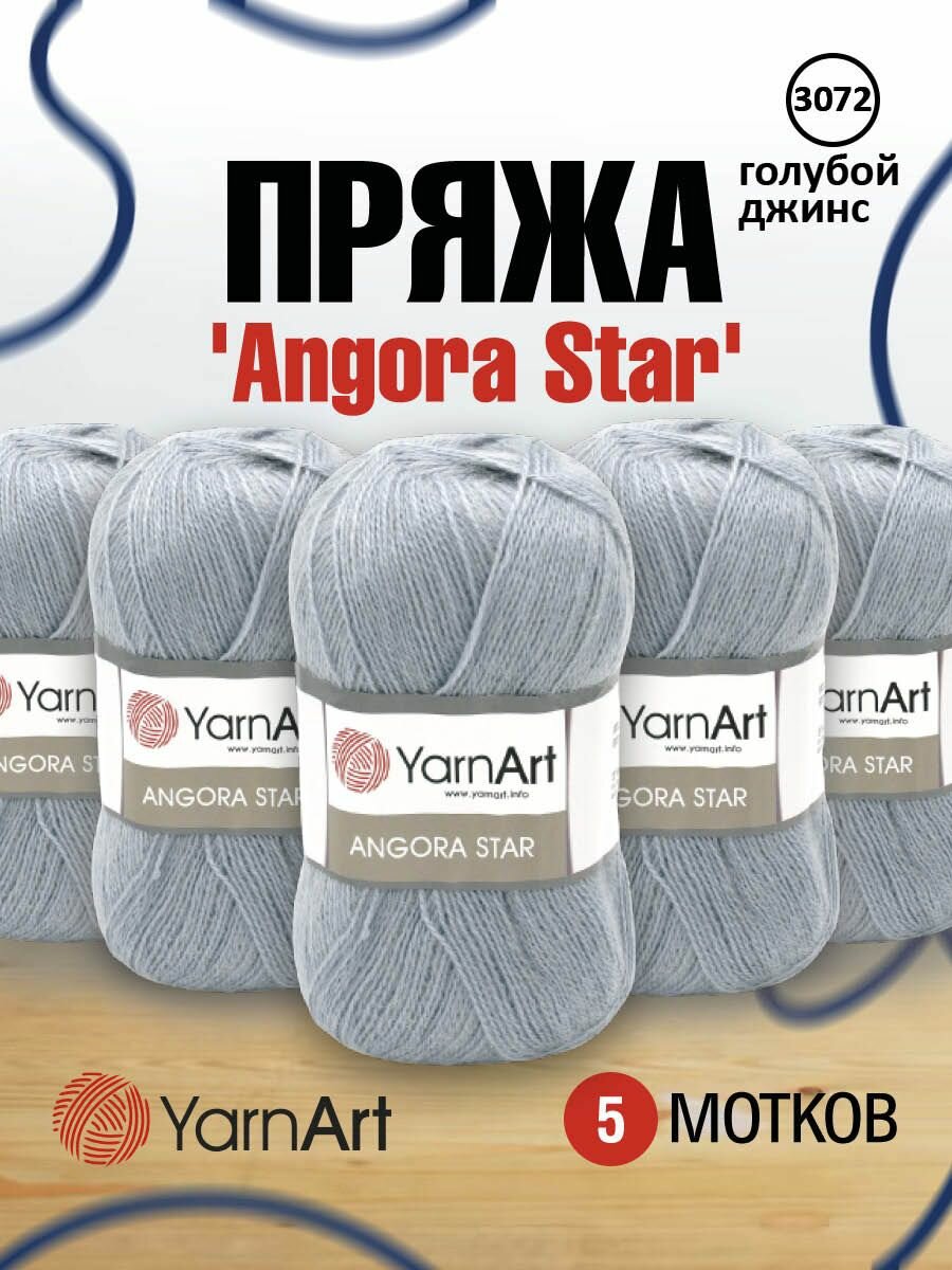 Пряжа для вязания YarnArt 'Angora Star' 100г, 500м (20% тонкая шерсть, 80% акрил) (3072 голубой джинс), 5 мотков