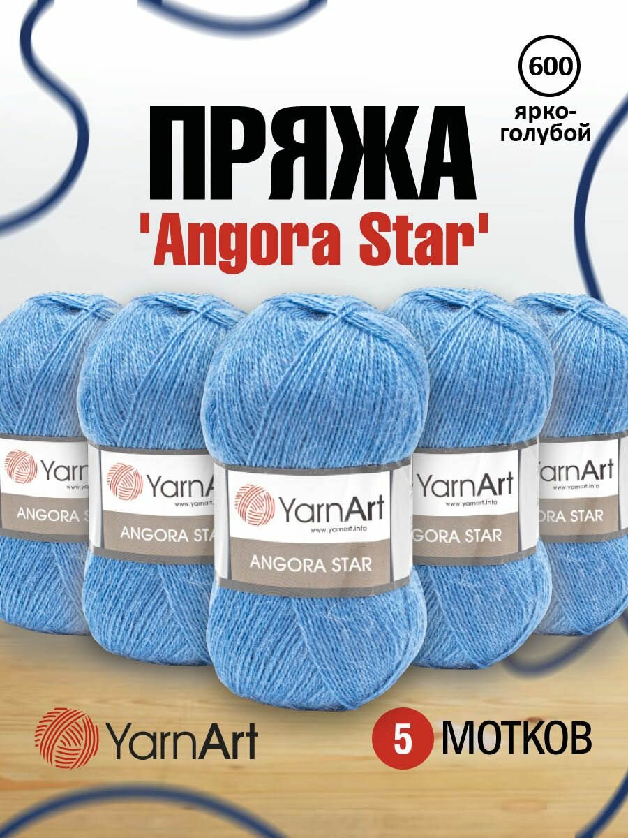 Пряжа для вязания YarnArt 'Angora Star' 100г, 500м (20% тонкая шерсть, 80% акрил) (600 ярко-голубой), 5 мотков