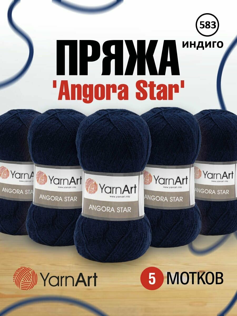 Пряжа для вязания YarnArt 'Angora Star' 100г, 500м (20% тонкая шерсть, 80% акрил) (583 индиго), 5 мотков