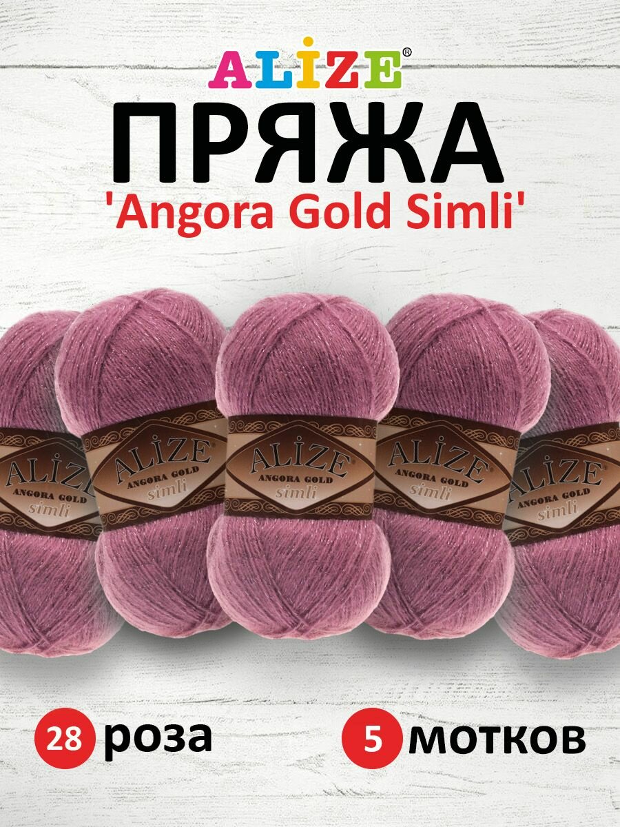 Пряжа для вязания ALIZE 'Angora Gold Simli', 100г, 500м (20% шерсть, 5% металлик, 75% акрил) (28 роза), 5 мотков информация: