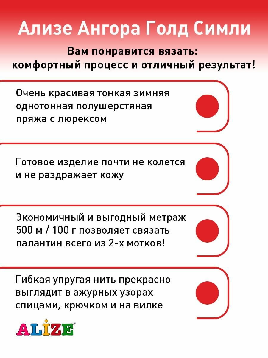 Пряжа Alize Angora Gold Simli (Ангора Голд Симли Ализе) 106-красный 1 530 ₽