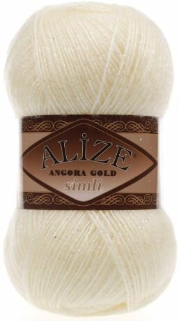 Пряжа Alize Angora Gold Simli (20% шерсть, 75% акрил, 5% металлик) 100 гр, 500 м, 01 кремовый , 1 моток