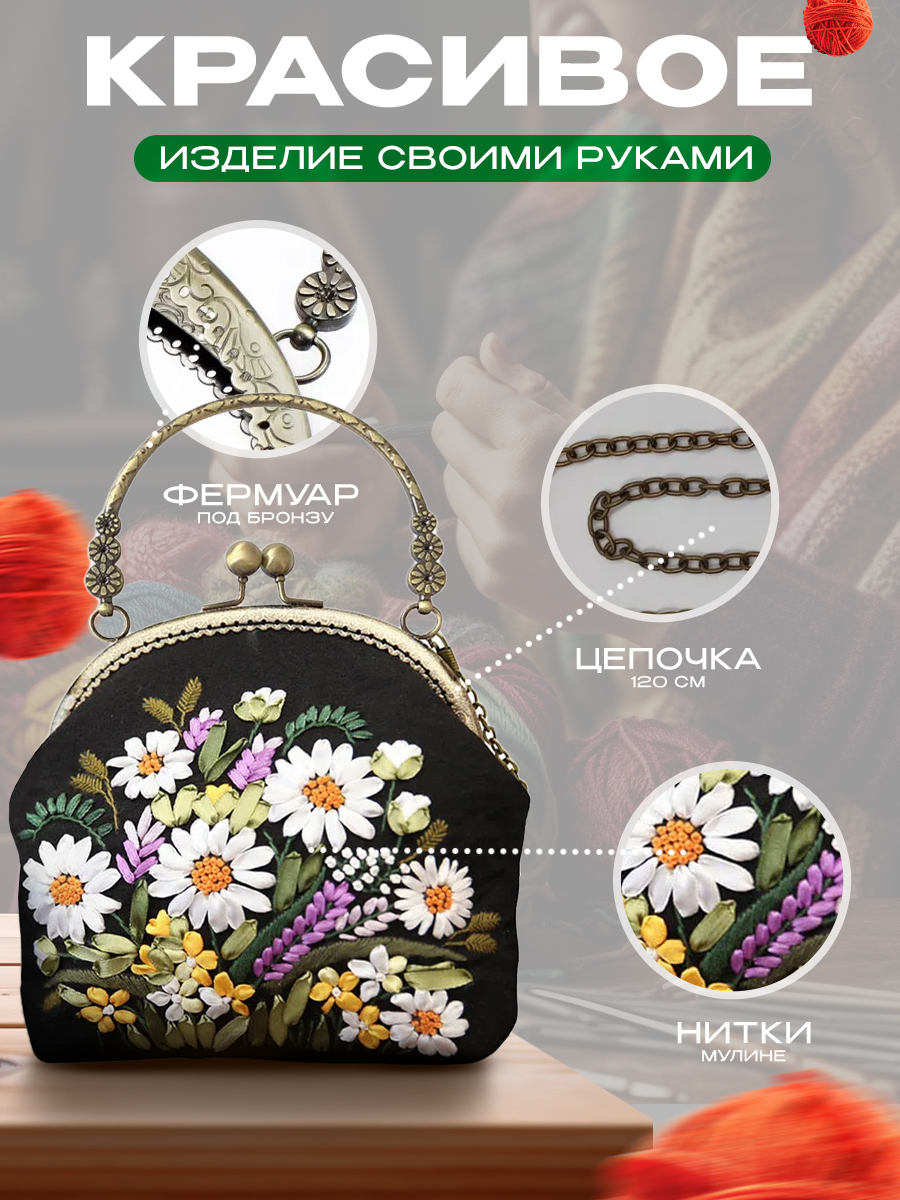 10 цен на Набор для творчества, шитья и вышивки "сумочка на цепочке" черный