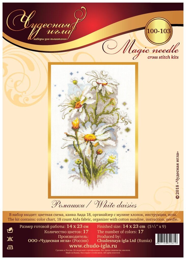 Набор для вышивания Чудесная игла Ромашки, 100-103, 14*23 см информация: