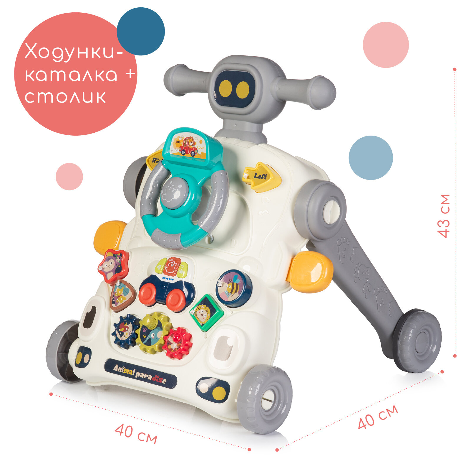 Ходунки - каталка детские Babyhit Multi Toy, трансформируется в игровой столик, цвет серый