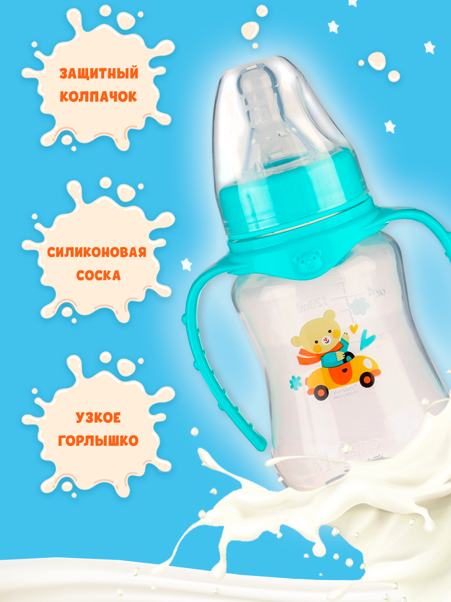 Отзывы на Бутылочка для кормления "Мишутка", объём: 150 мл., приталенная, с ручками, для детей и малышей от 0 месяцев, цвет бирюзовый