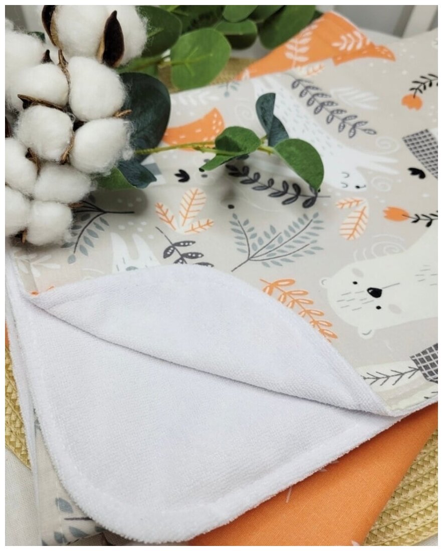Пеленка текстильная многоразовая непромокаемая хлопок махра клеенка 68х80 см Owl&EarlyBird, набор 2 штуки