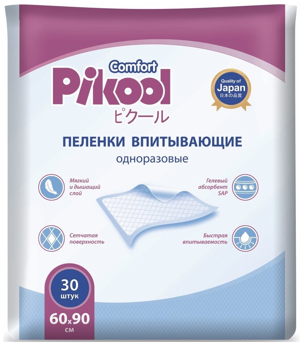 Pikool Пеленки Пикул впитывающие одноразовые белые 60х90 см 30 шт. информация: