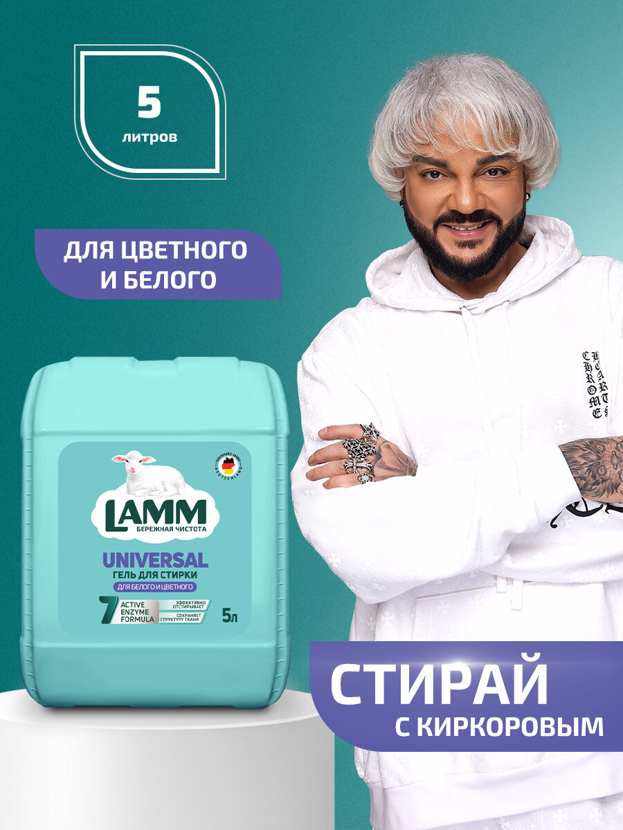 Гель для стирки LAMM "UNIVERSAL" Ламм универсальный 5 л, лам бесфосфатный, для белого, для цветного, для темного, гипоаллергенный, Лам 1 499 ₽