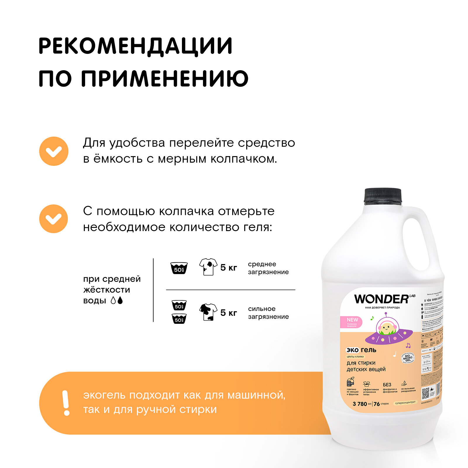 | Подробная комплектация | Эко гель для стирки белья WONDER LAB 1шт |