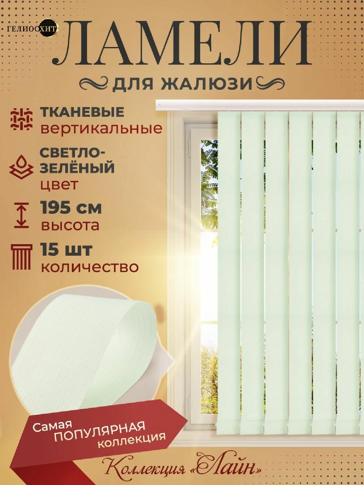 Ламели для вертикальных жалюзи 15 шт высотой 195 см светло-зеленого цвета (карниз приобретается отдельно) коллекция лайн информация: