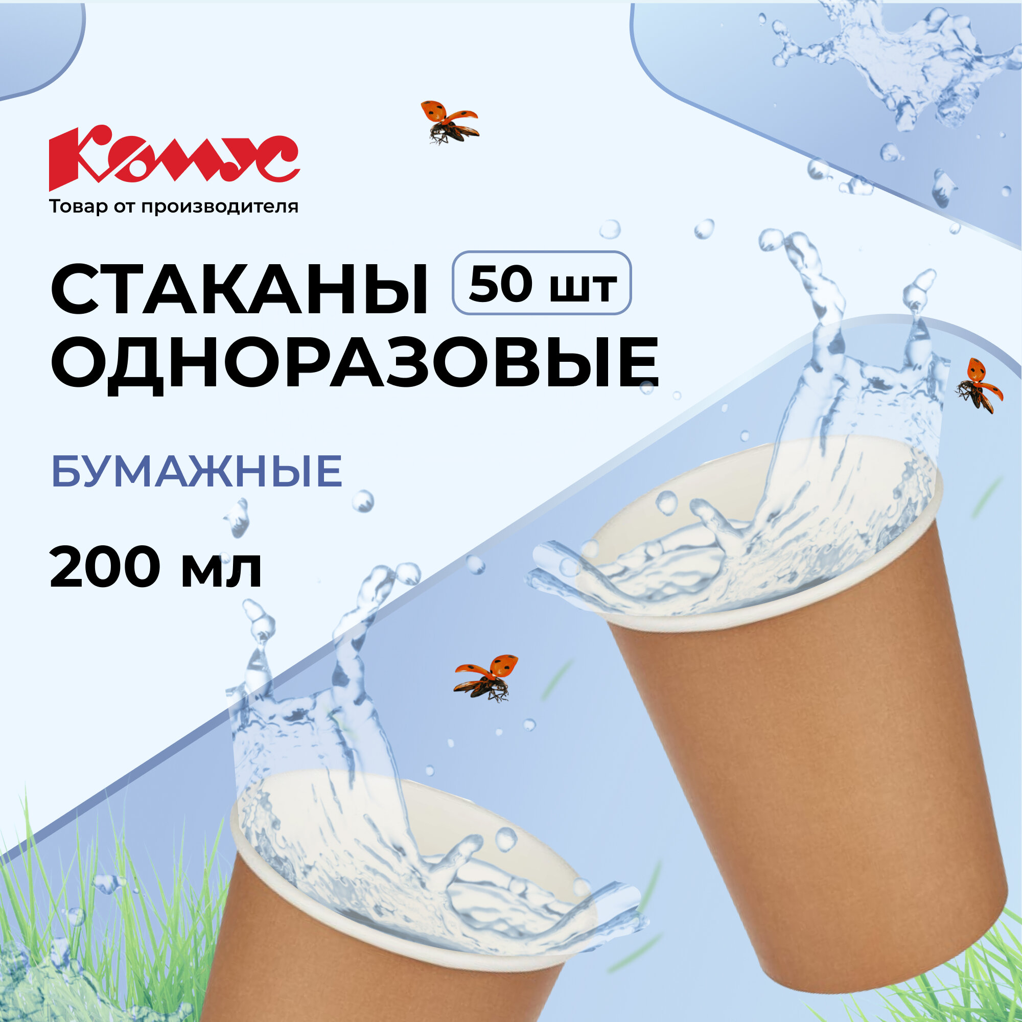 Стаканы одноразовые бумажные Комус, 200 мл, 50 штук, крафт 270 ₽