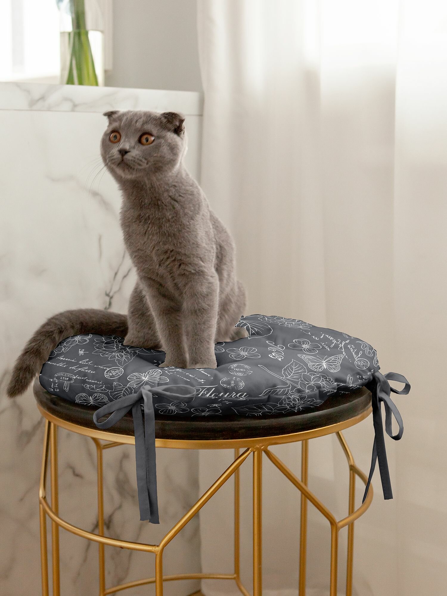 10 цен на Подушка на стул с тафтингом круглая d 40 "Mia Cara" рис 30284-11 Жозефина графит