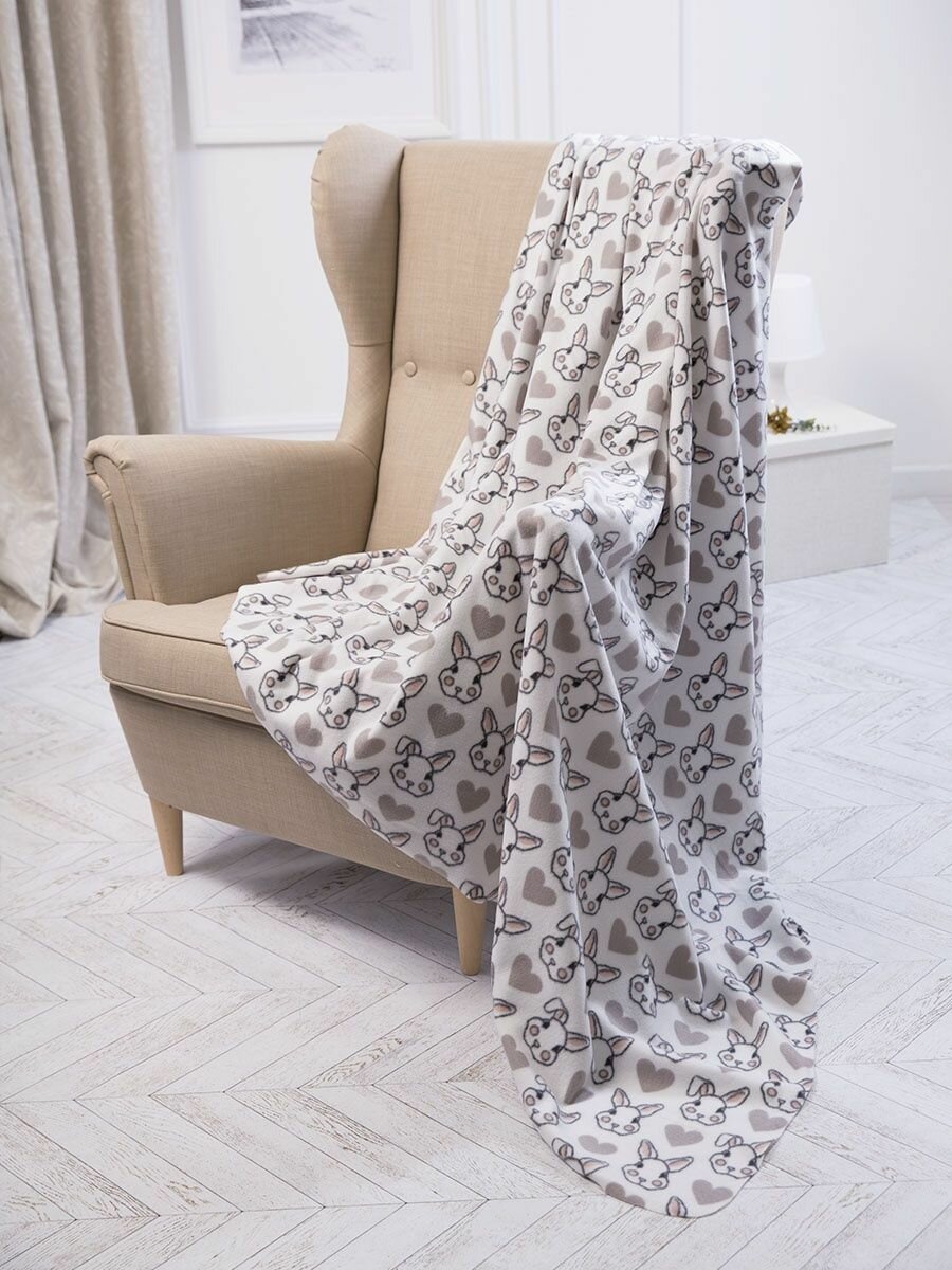 Плед флисовый 150х200 на кровать для пикника детский, "Кролики " бежевый 688 ₽