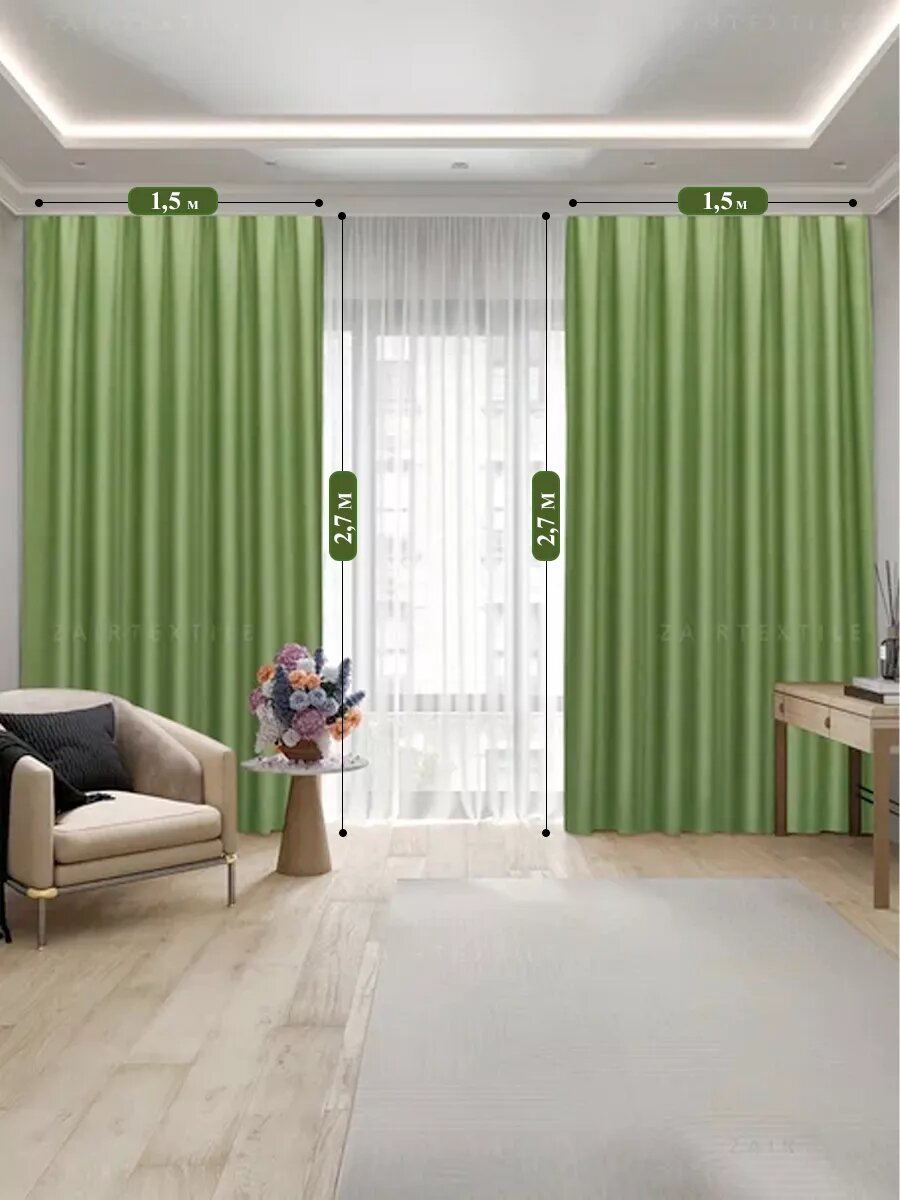 Шторы портьеры блэкаут, (комплект из 2шт.)150х270см, зеленый цвет информация:
