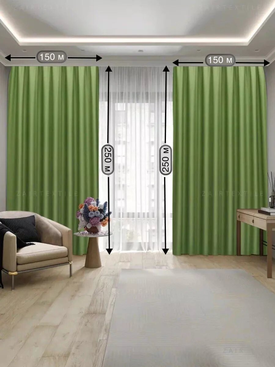 Отзывы на Шторы портьеры Блэкаут, комплект 150х250 см (2шт.), зеленый цвет