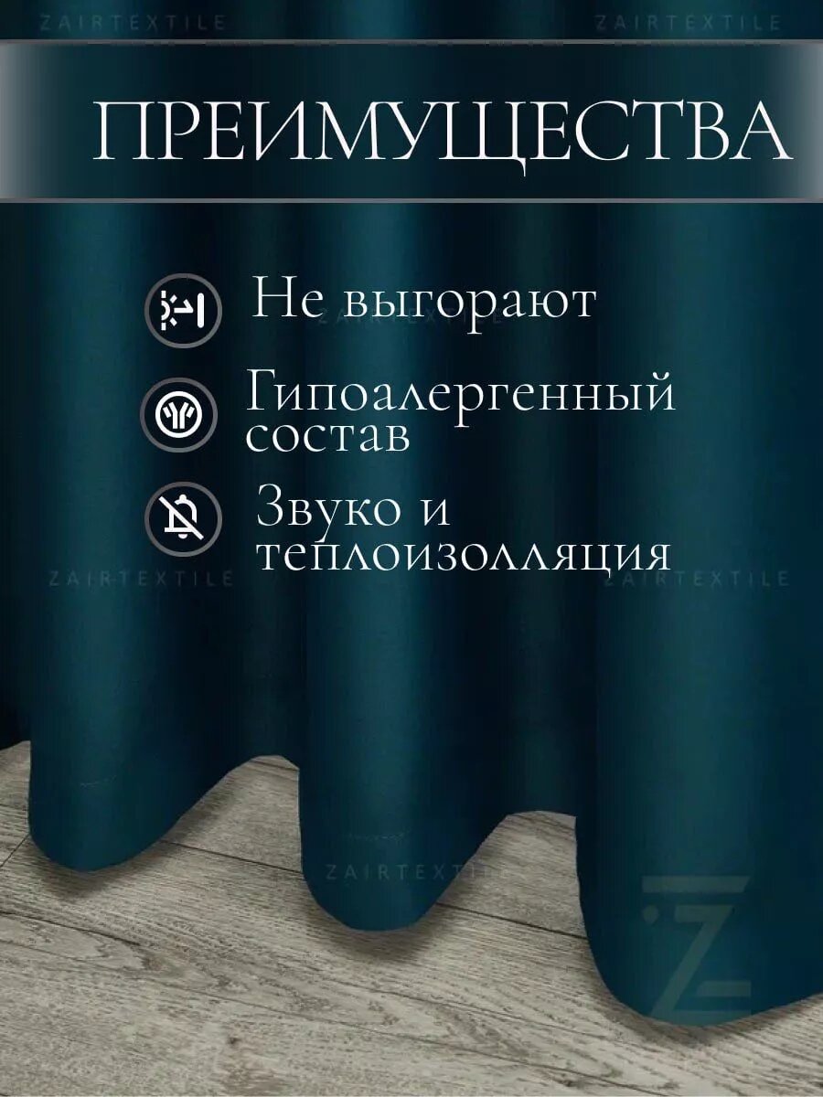 Шторы портьеры Блэкаут, комплект 150х250см из (2шт.), сине-зеленый информация: