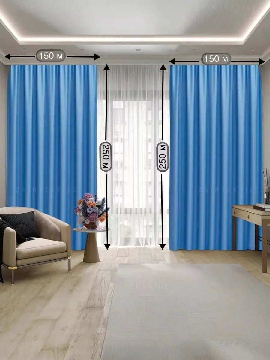 Отзывы на Шторы портьеры Блэкаут, (комплект из 2шт.)150х250см, голубой цвет