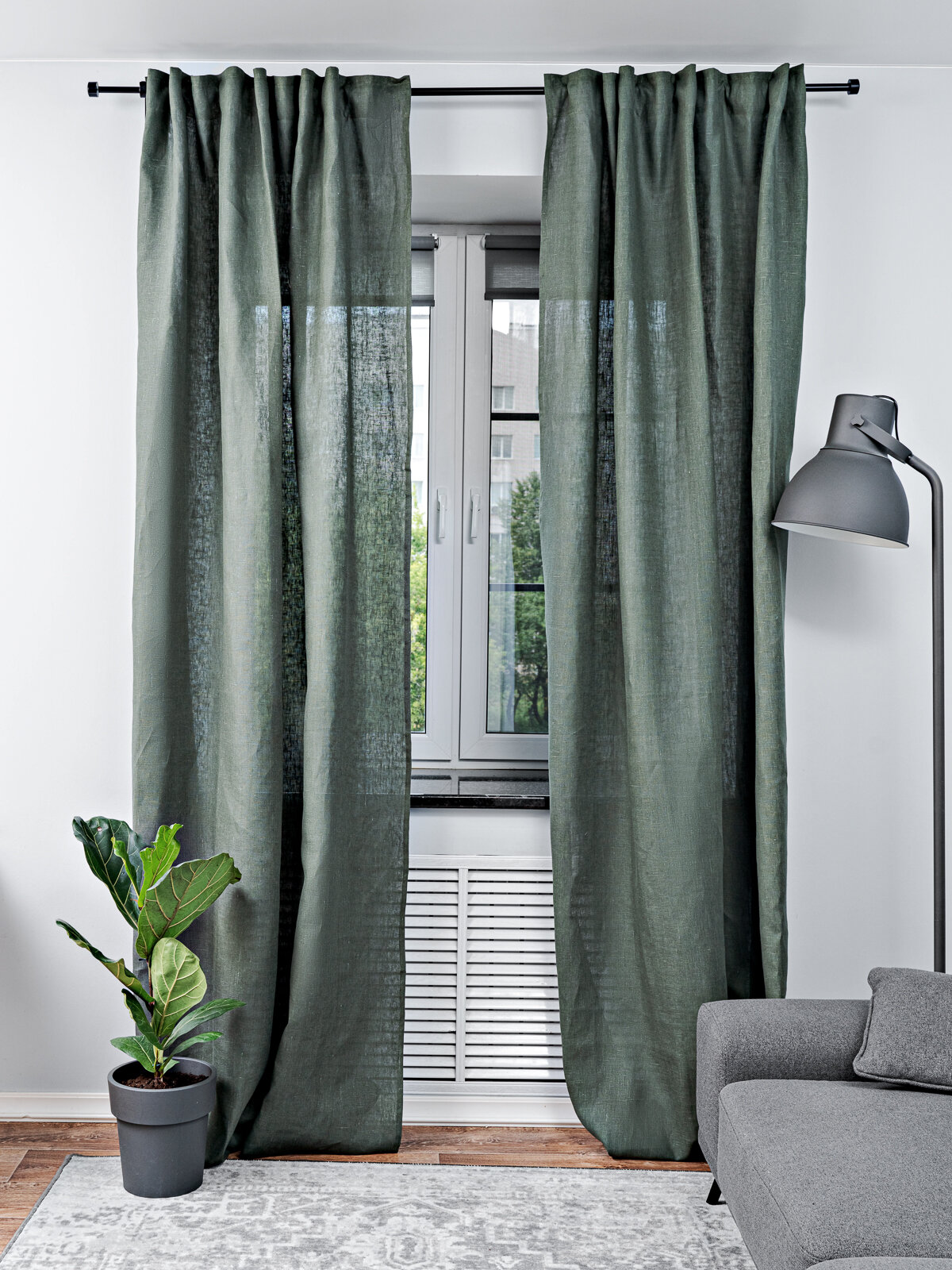 Штора льняная интерьерная RUSBY 145х300 см, 1 шт, Тесьма, Шалфей 2 342 ₽