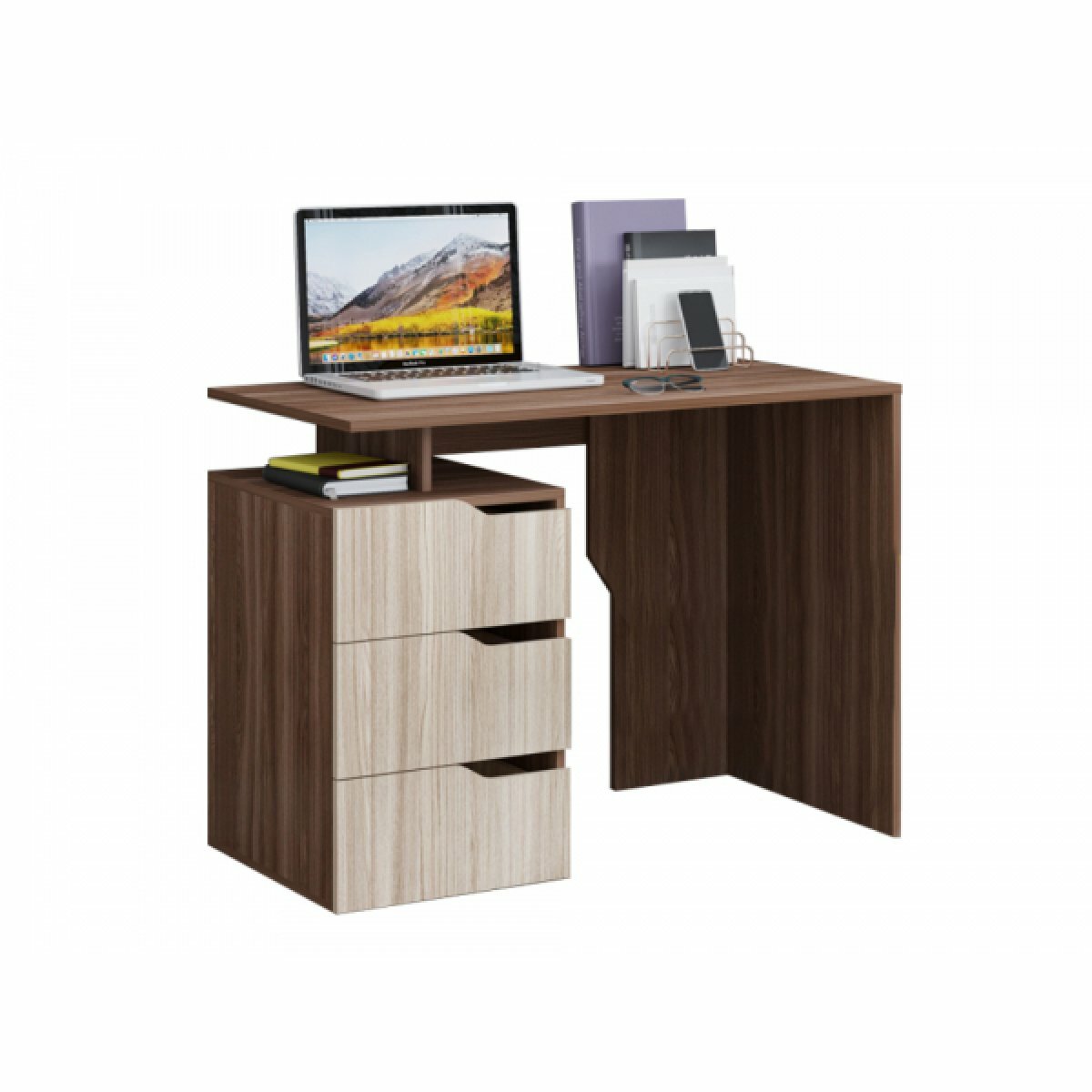 Стол компьютерный маленький подвесной с ящиками Шкафмарт СО-6 Венге