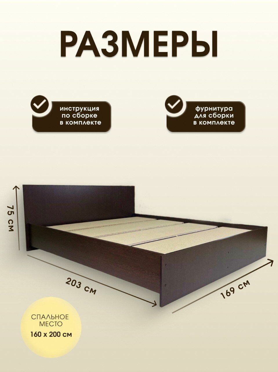 Кровать "Амелина" 1,6 203 х 168 х 76, венге ЛДСП, без матраса информация: