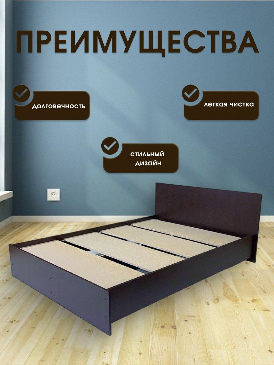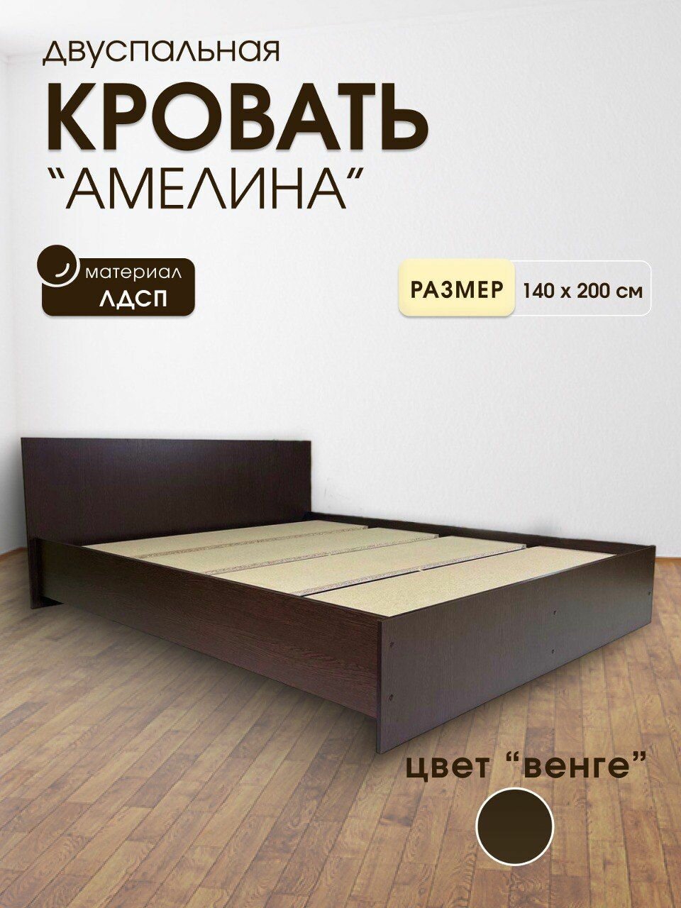 Отзывы на Кровать "Амелина", 1,4 х 2,03 х 0,74 м, ЛДСП, Венге цвет, без матраса