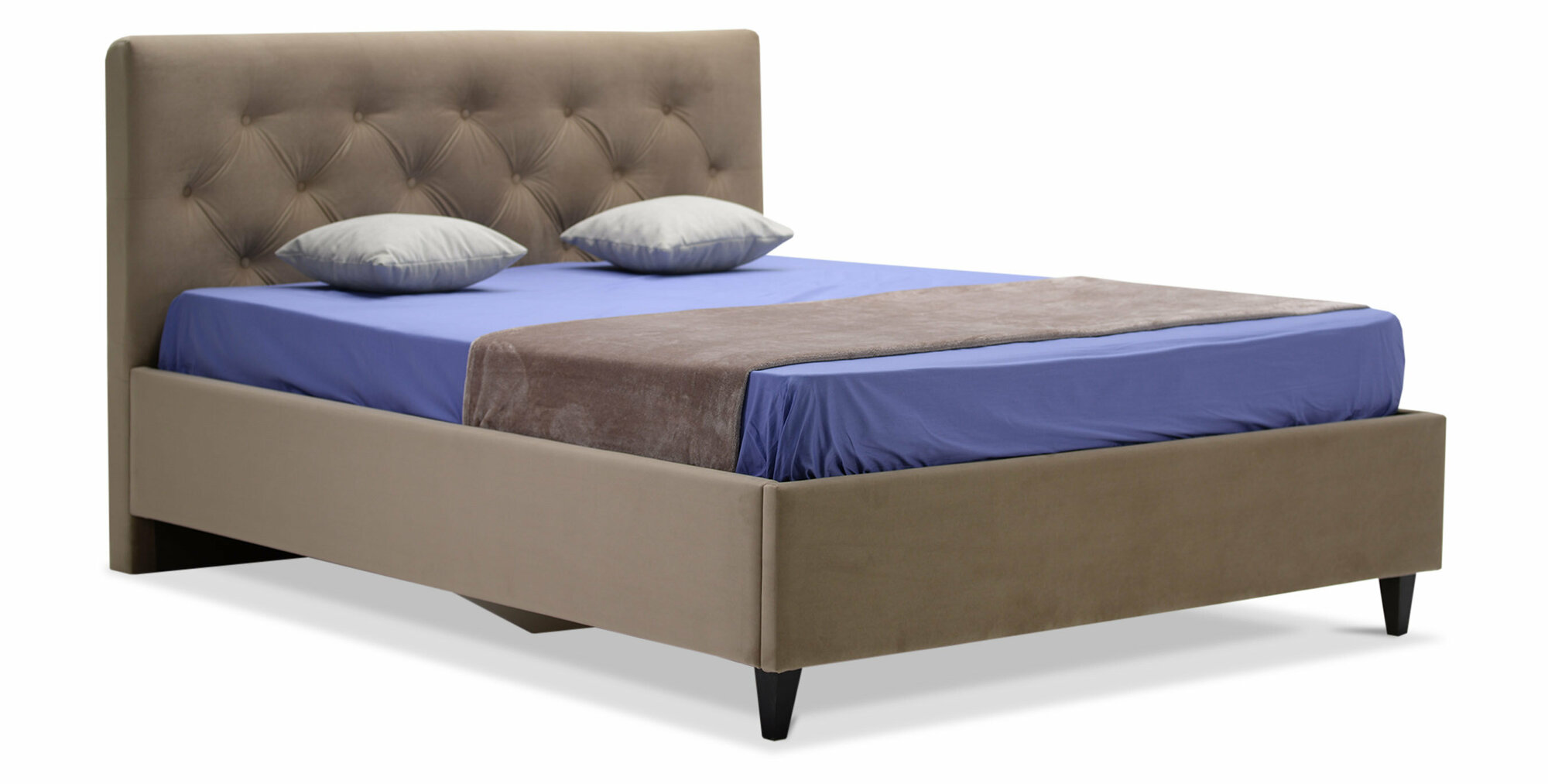 10 цен на Двуспальная кровать Селина 140х200с подъемным механизмом, Ладья, с мягким изголовьем для дома и спальни, ортопедическое основание, ящик для белья, Сonfetti Latte