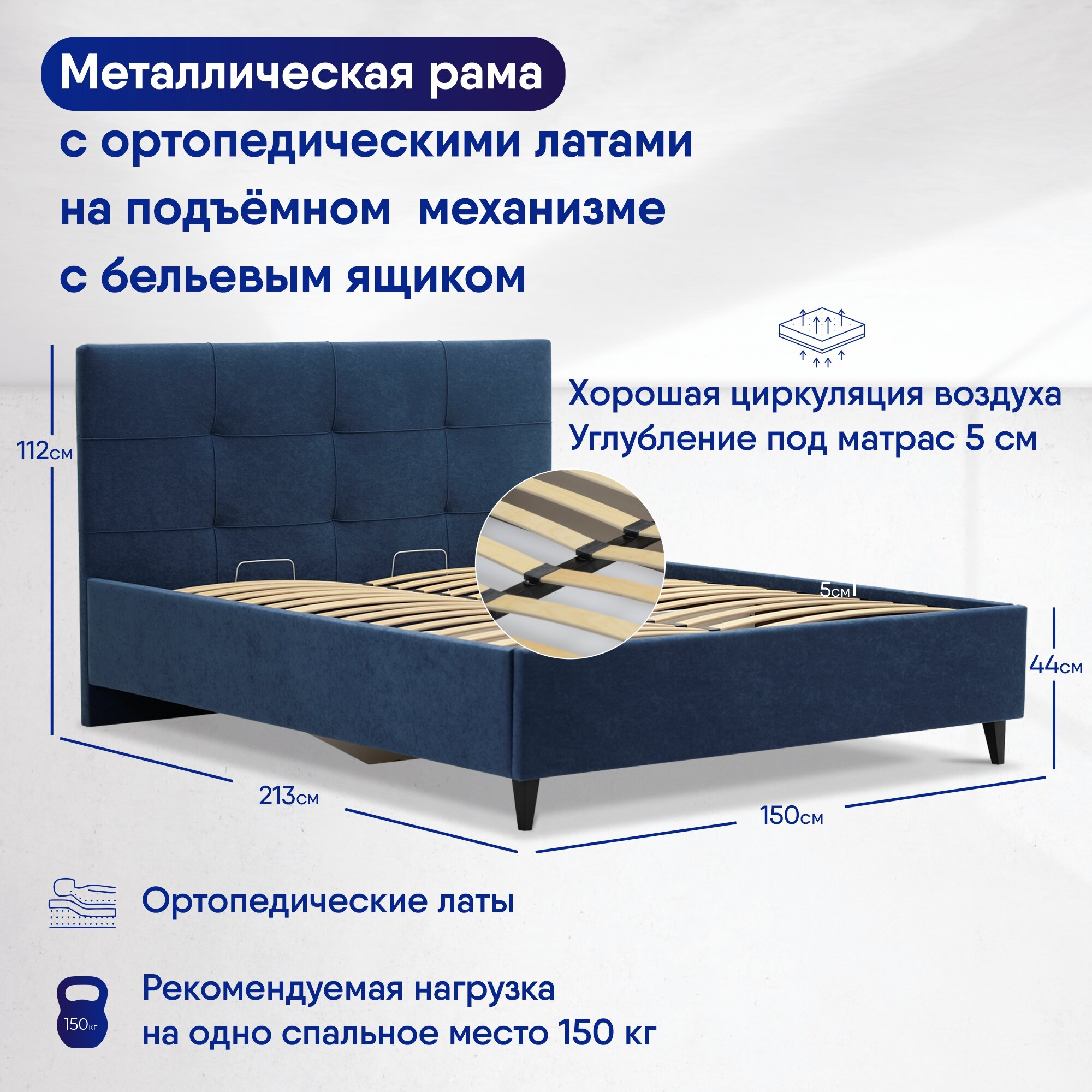 | Особенности | мягкое изголовье, с изножьем, с подъемным механизмом, с ящиком для белья |