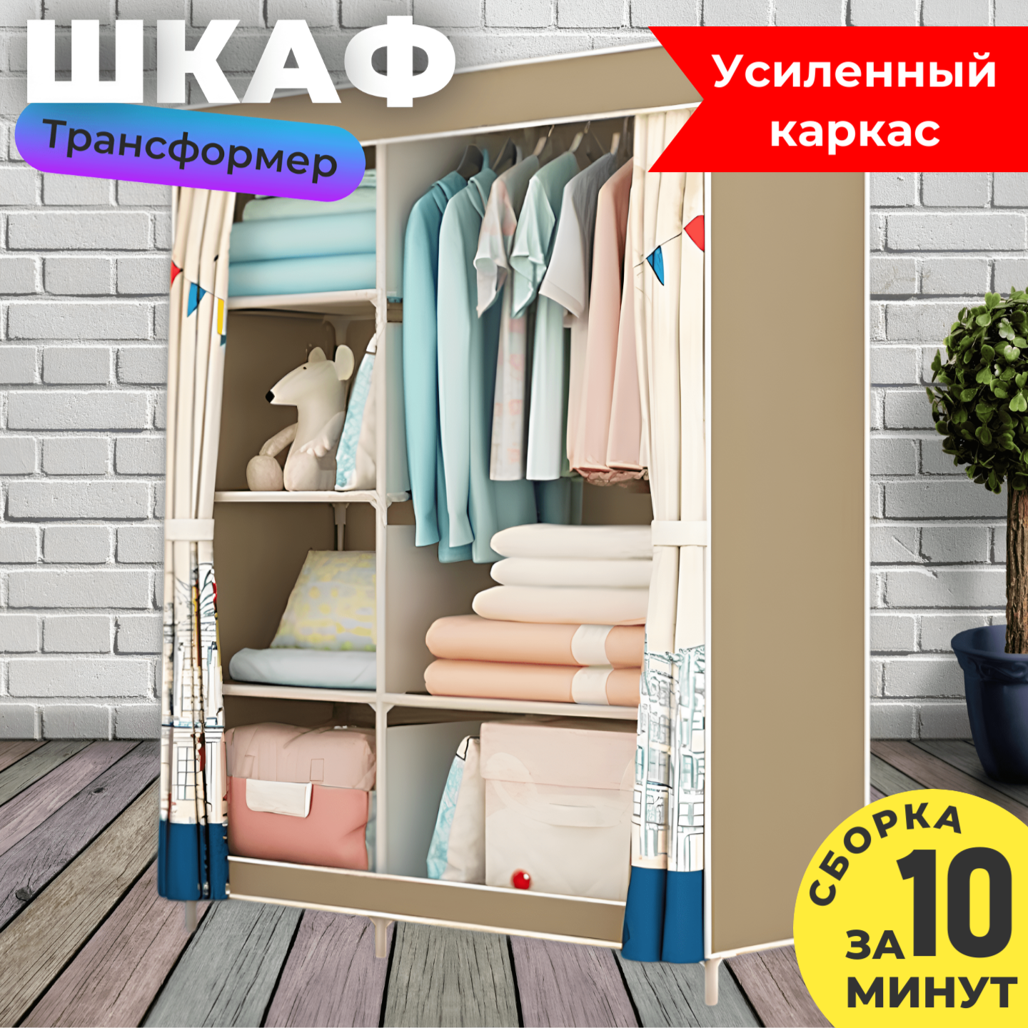 10 цен на Тканевый каркасный шкаф для одежды с полками 105х45х165см