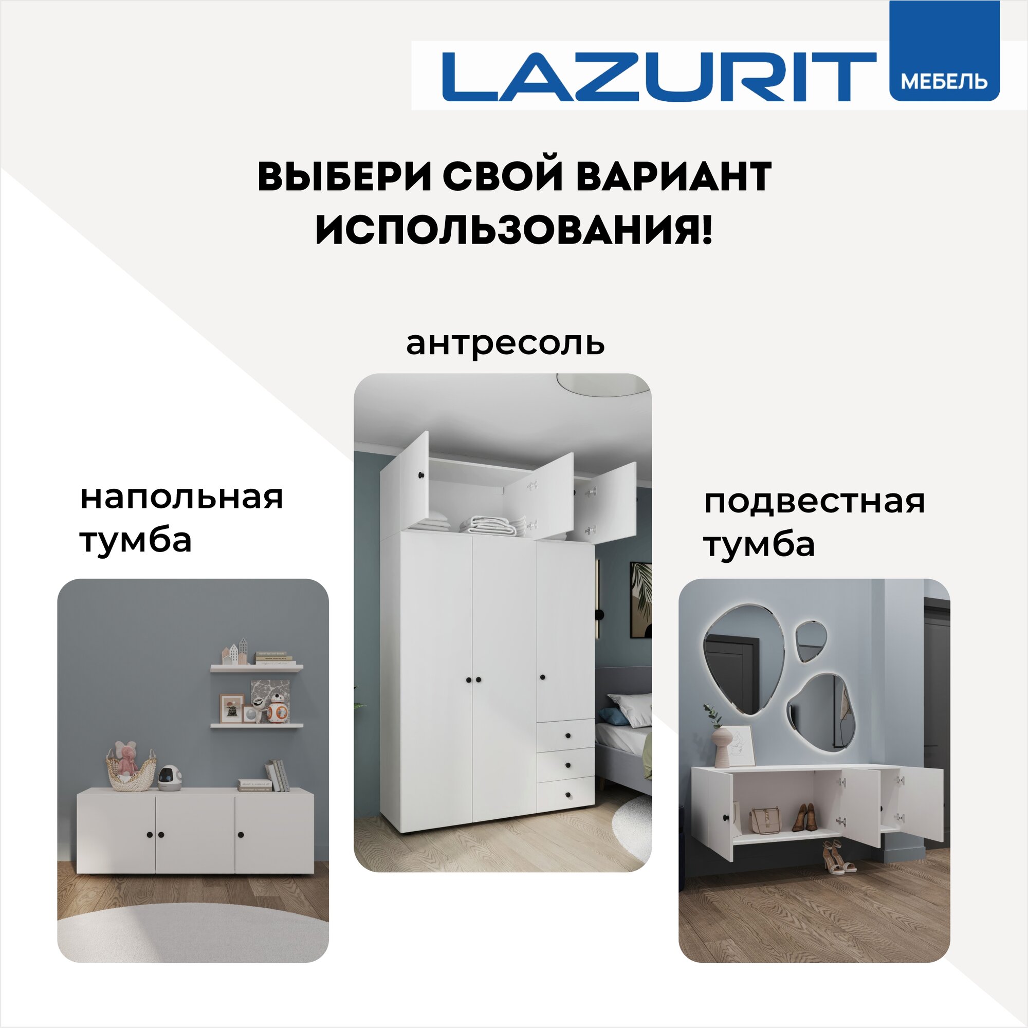 Антресоль для шкафа Lazurit Эльбрус цвет белый 3 двери информация: