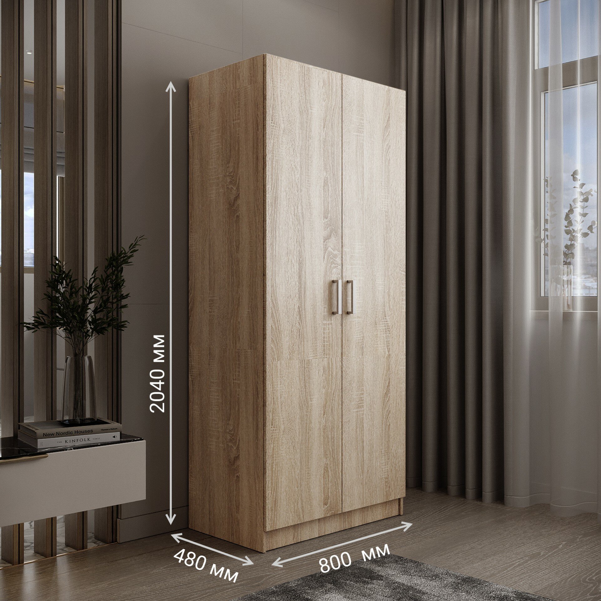Отзывы на Шкаф для одежды РИК распашной двухстворчатый с полками 80х48х204 см дуб сонома