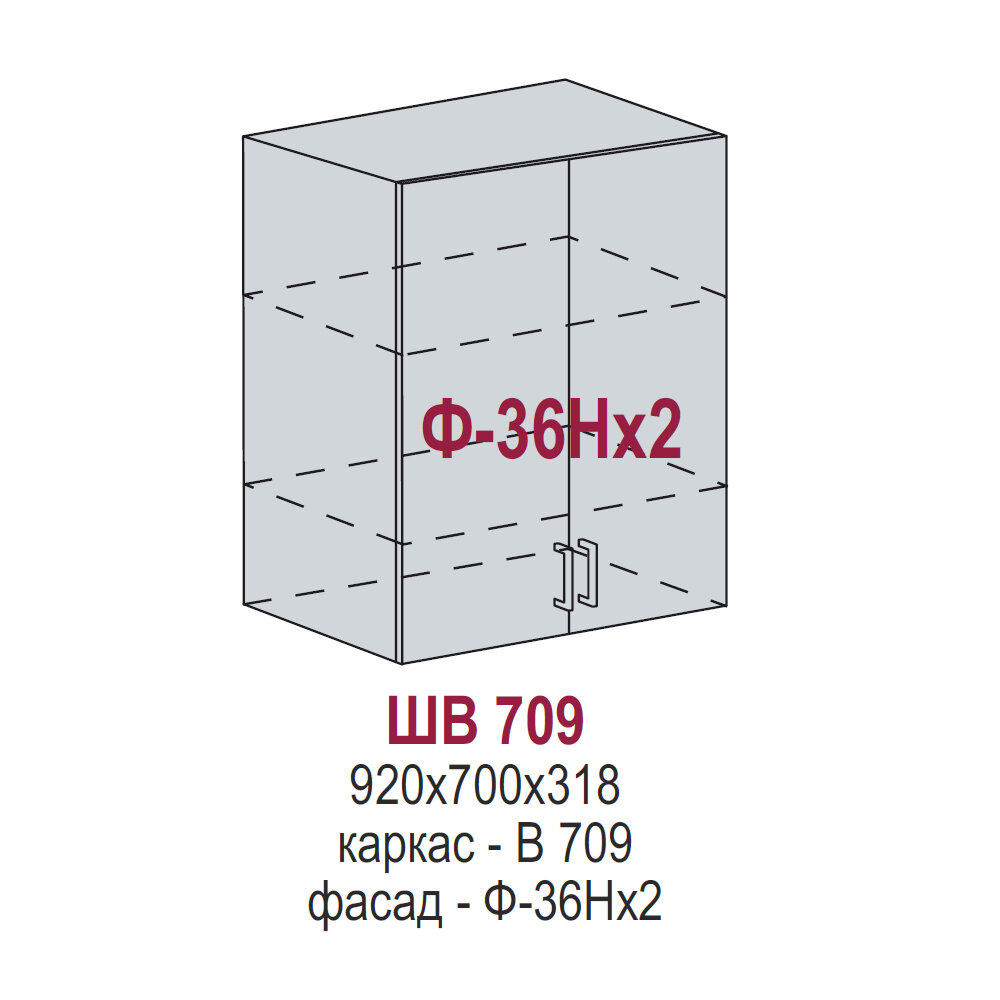 Кухонный шкаф навесной, Кухня Валерия, ШВ709, Вотан / Дождь Серебряный металлик информация: