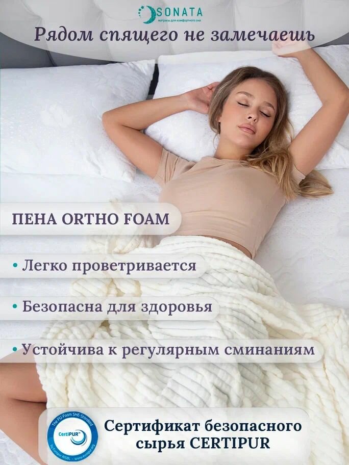 Отзывы на Ортопедический матрас 160х190 см SONATA, беспружинный, двуспальный, матрац для кровати, высота 19 см, плед в подарок