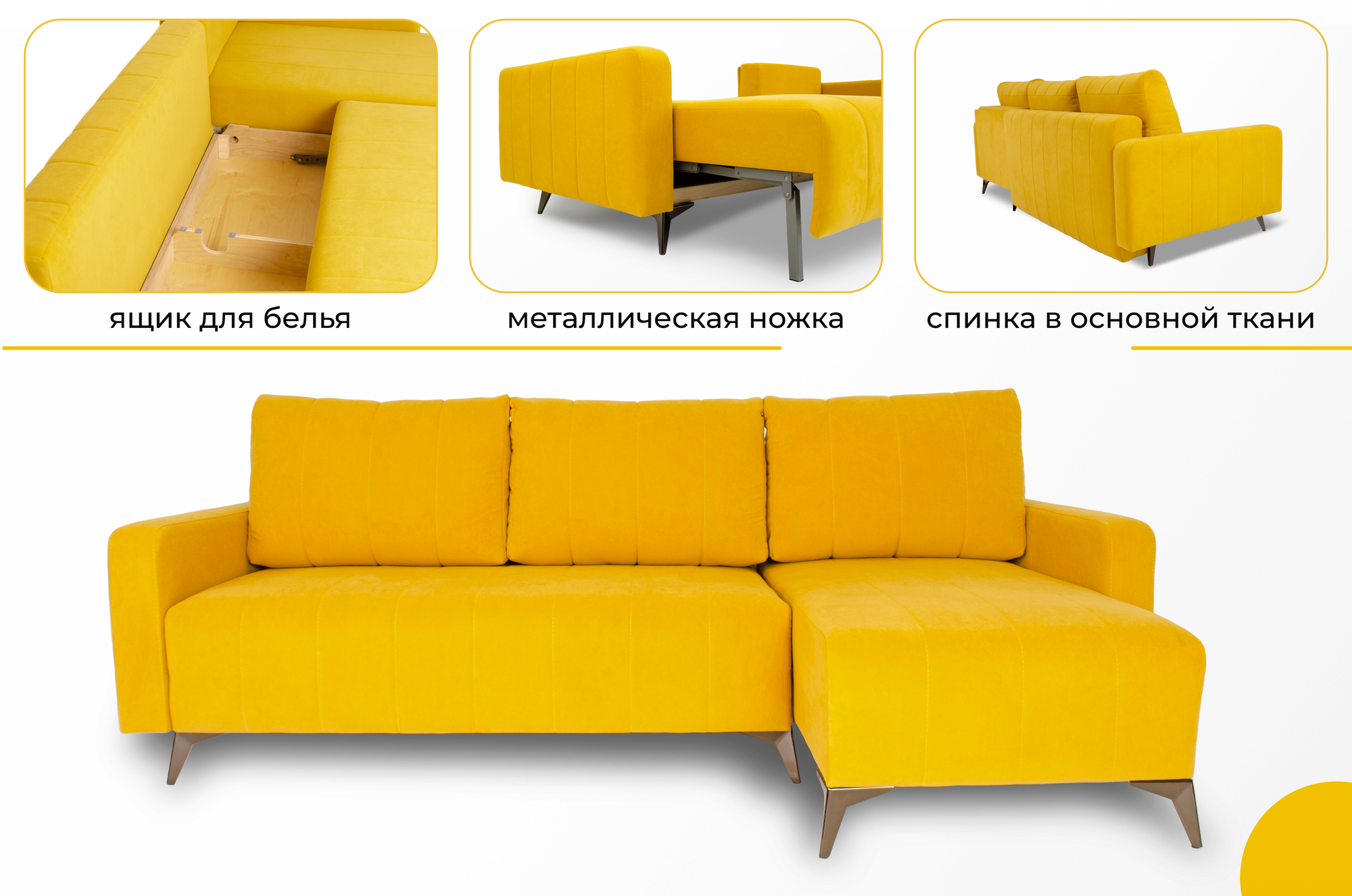 Раскладной двуспальный угловой диван кровать Лофт Вилсон 235х100см с шагающим механизмом пантограф на ножках для гостиной и спальни желтый информация: