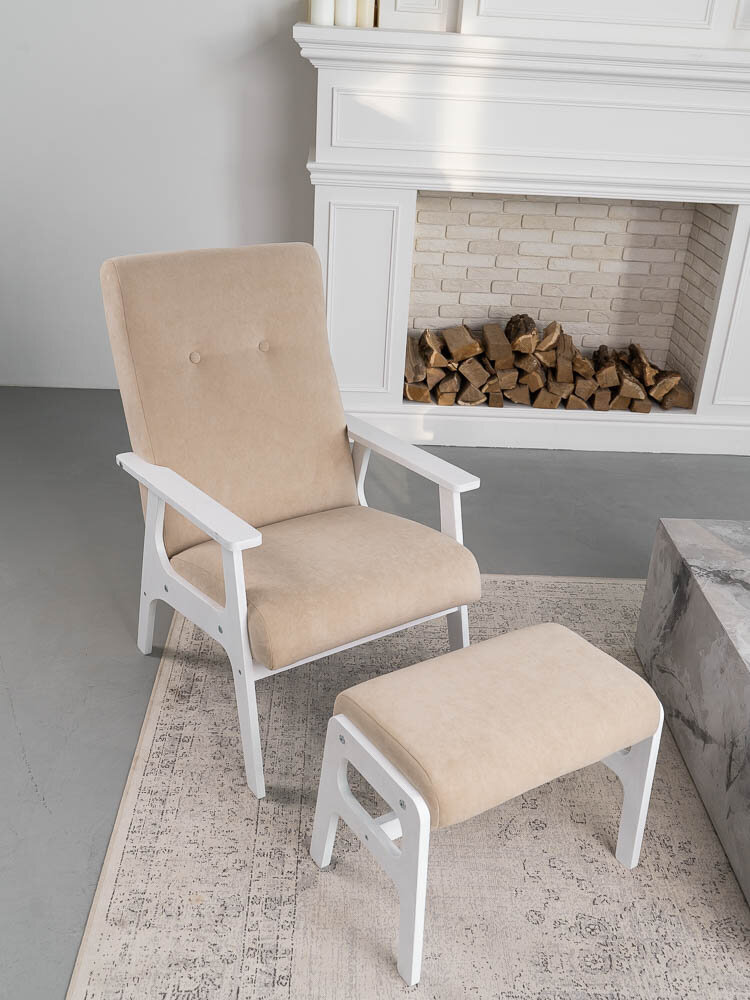 Кресло и пуф для ног CHILL светло-бежевый ноги белое масло 11 950 ₽