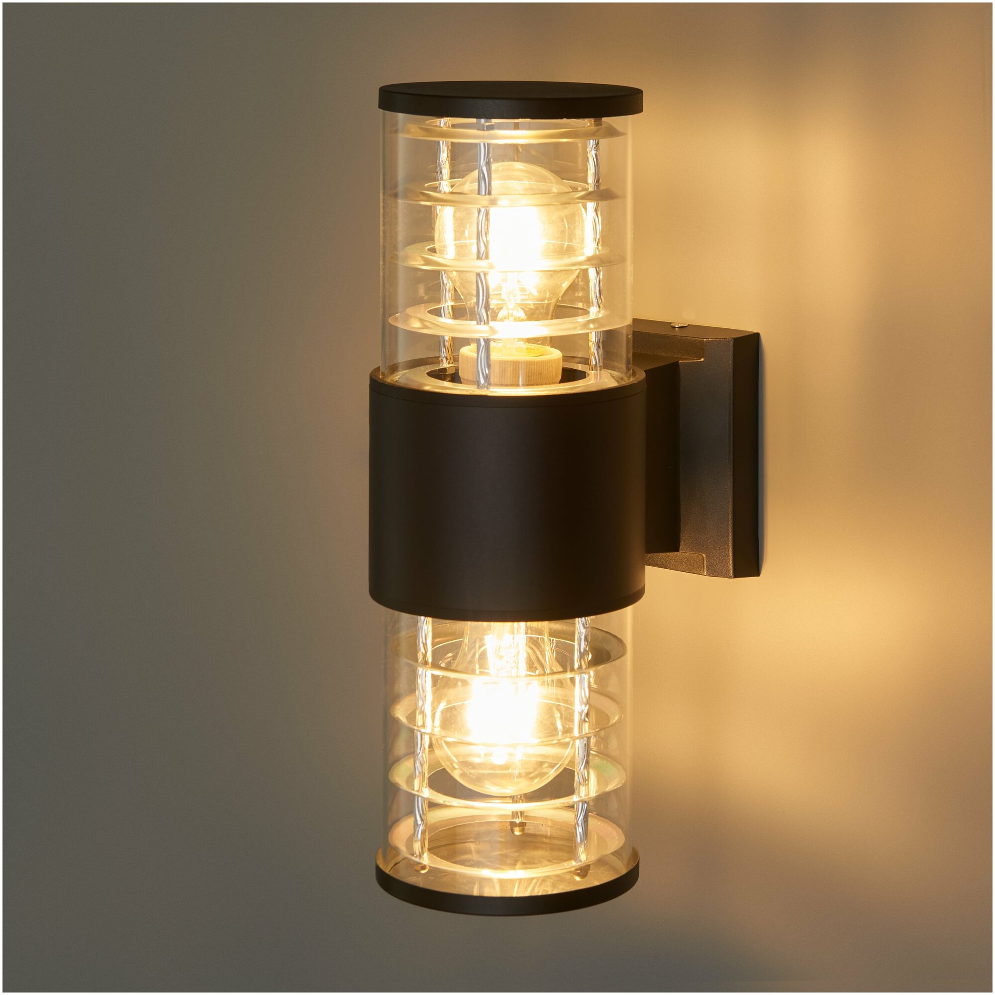 10 цен на Светильник настенный накладной Nuovo, 2хЕ27х60Вт, IP65, 175х108х320мм, алюминий/стекло, черный, duwi, 24392 2