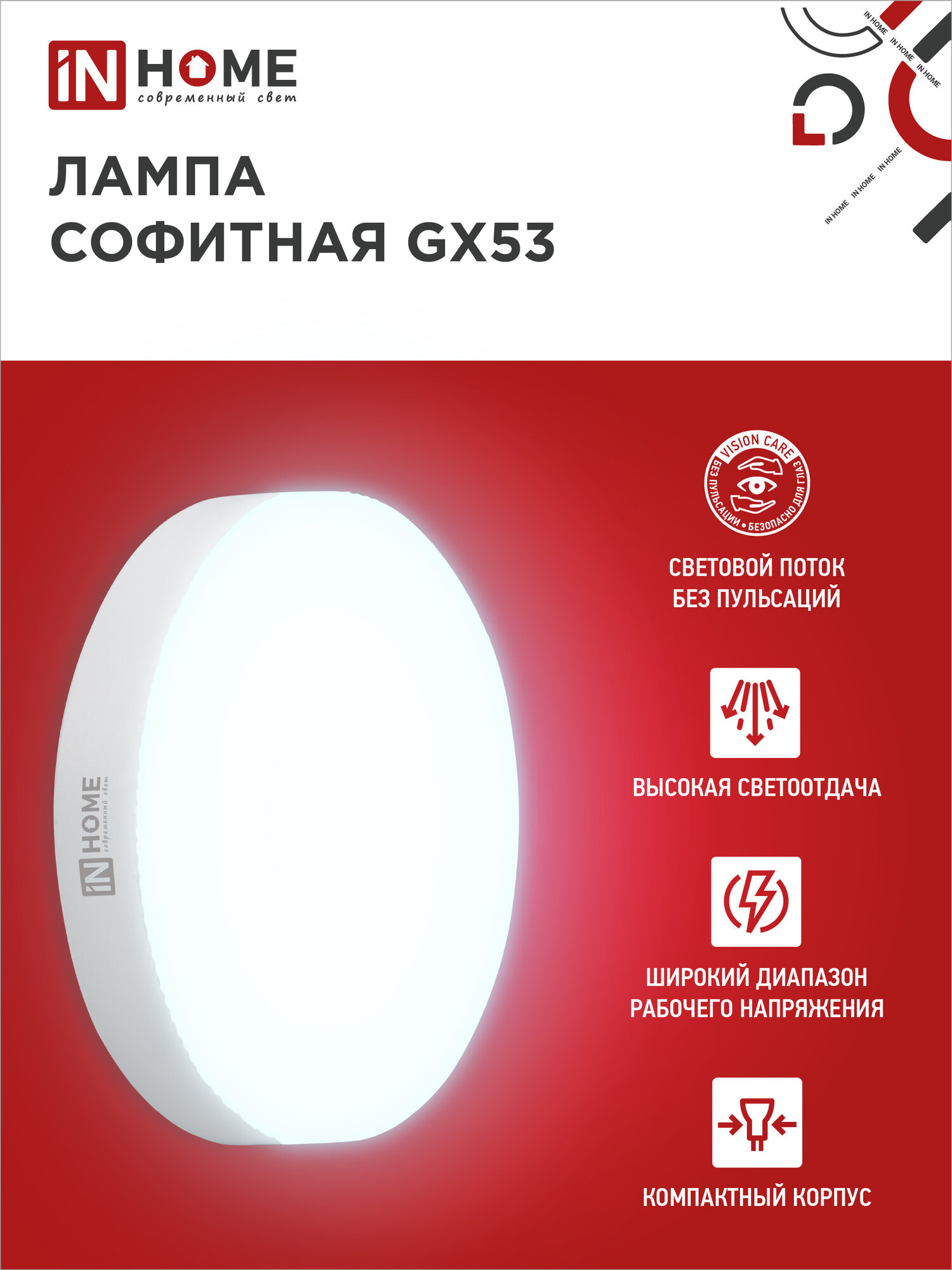 Лампа светодиодная IN HOME, LED-GX53-VC 15Вт 230В 3000К 1430Лм, Теплый белый свет, 10 шт. 1 783 ₽