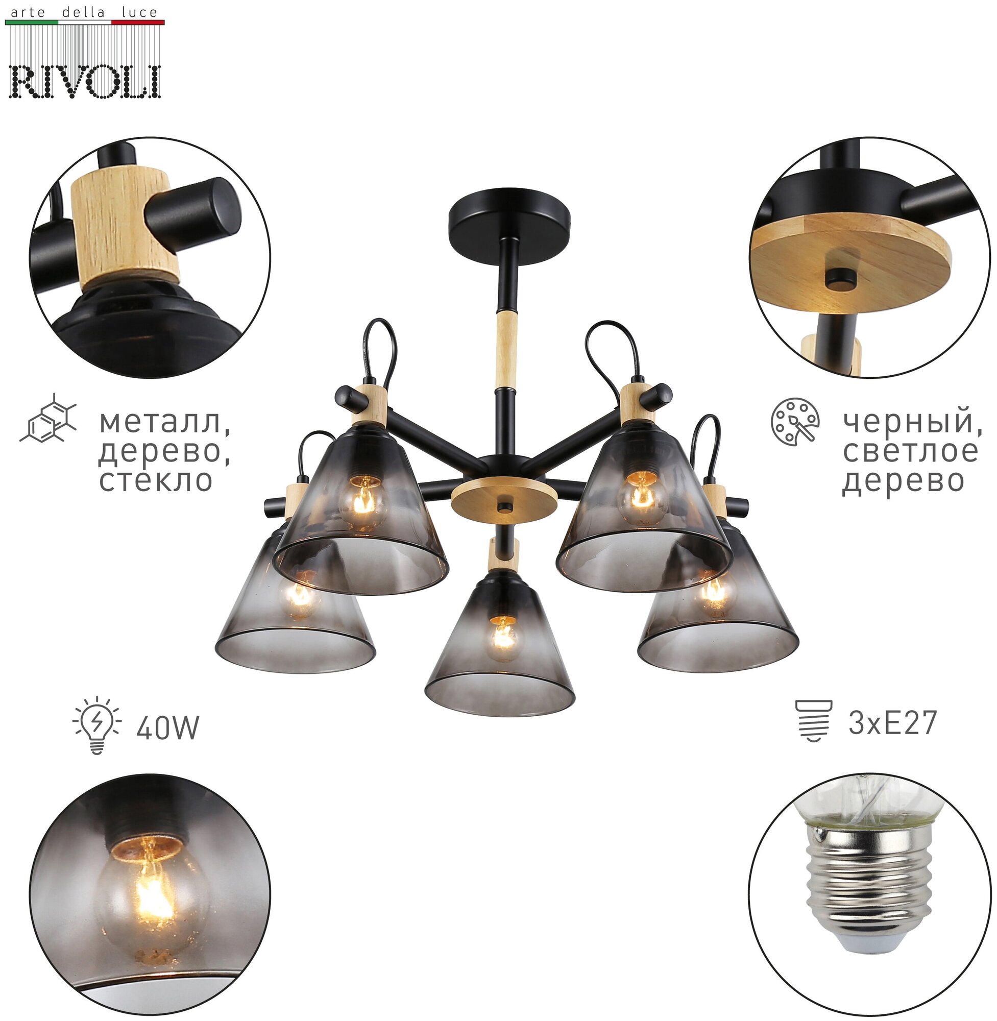 Люстра потолочная Rivoli Elmira под лампы 5хЕ27 40 Вт черный, светлое дерево модерн 15м2 информация: