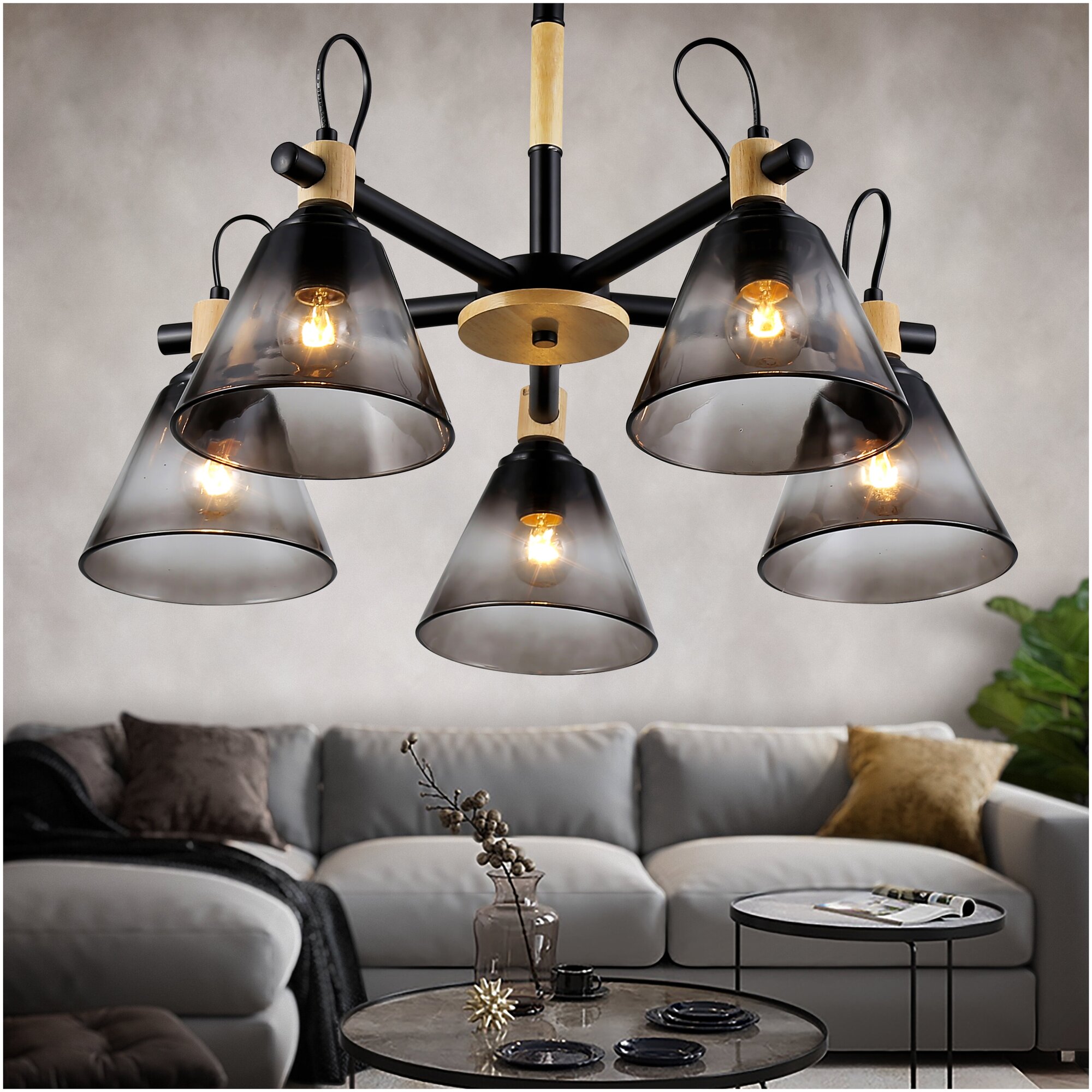 10 цен на Люстра потолочная Rivoli Elmira под лампы 5хЕ27 40 Вт черный, светлое дерево модерн 15м2