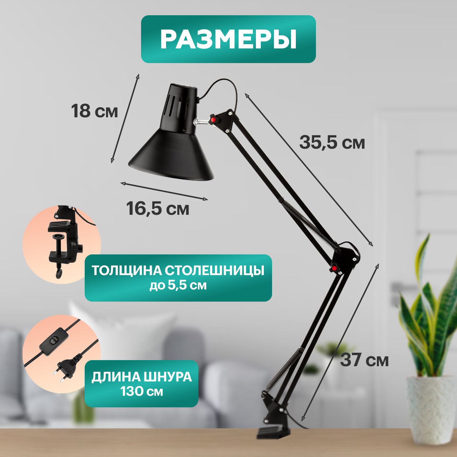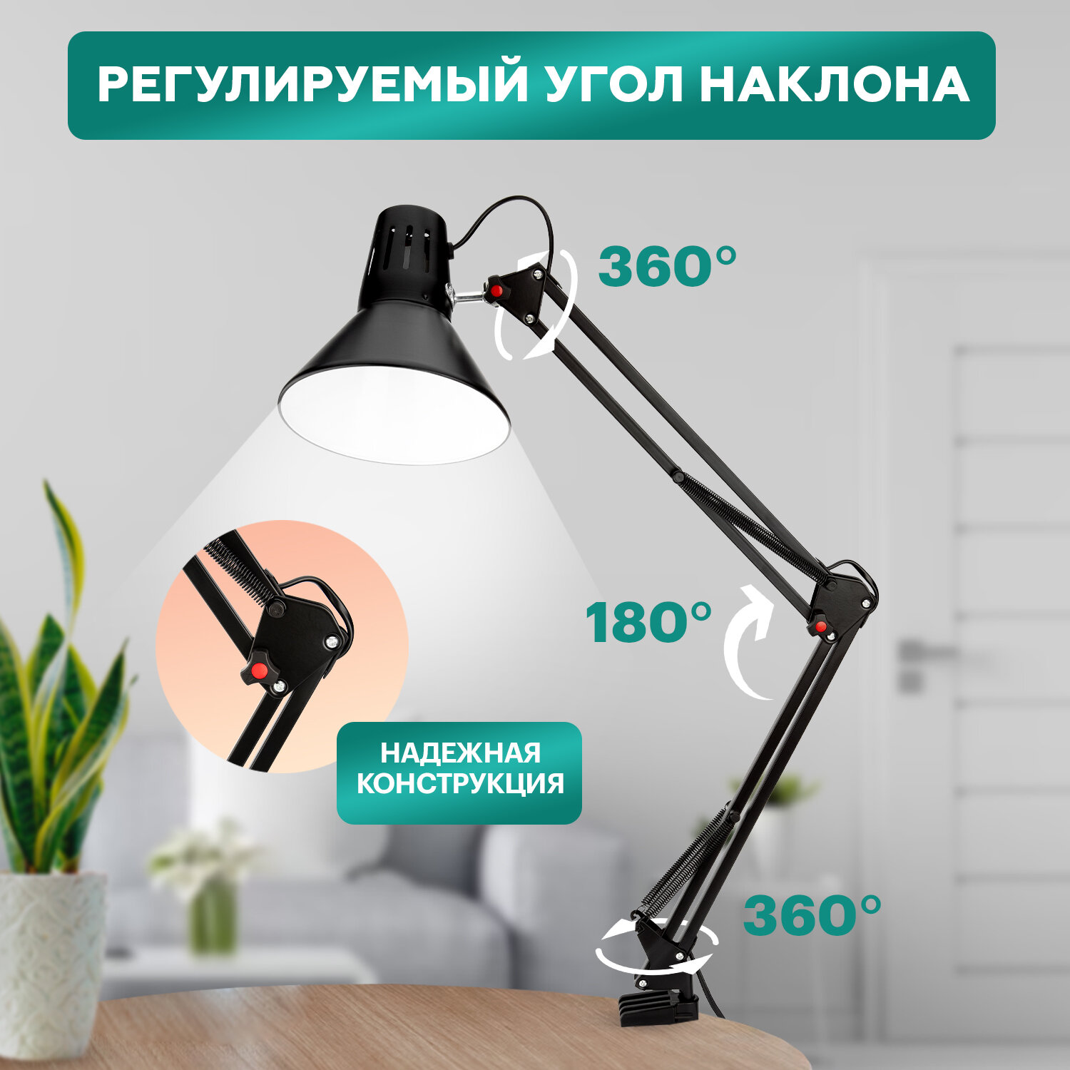 Лампа электрическая настольная Rexant Акцент, с винтовым зажимом, антрацит информация:
